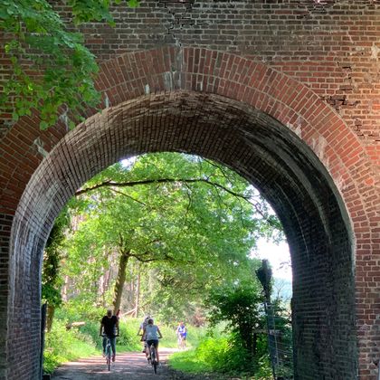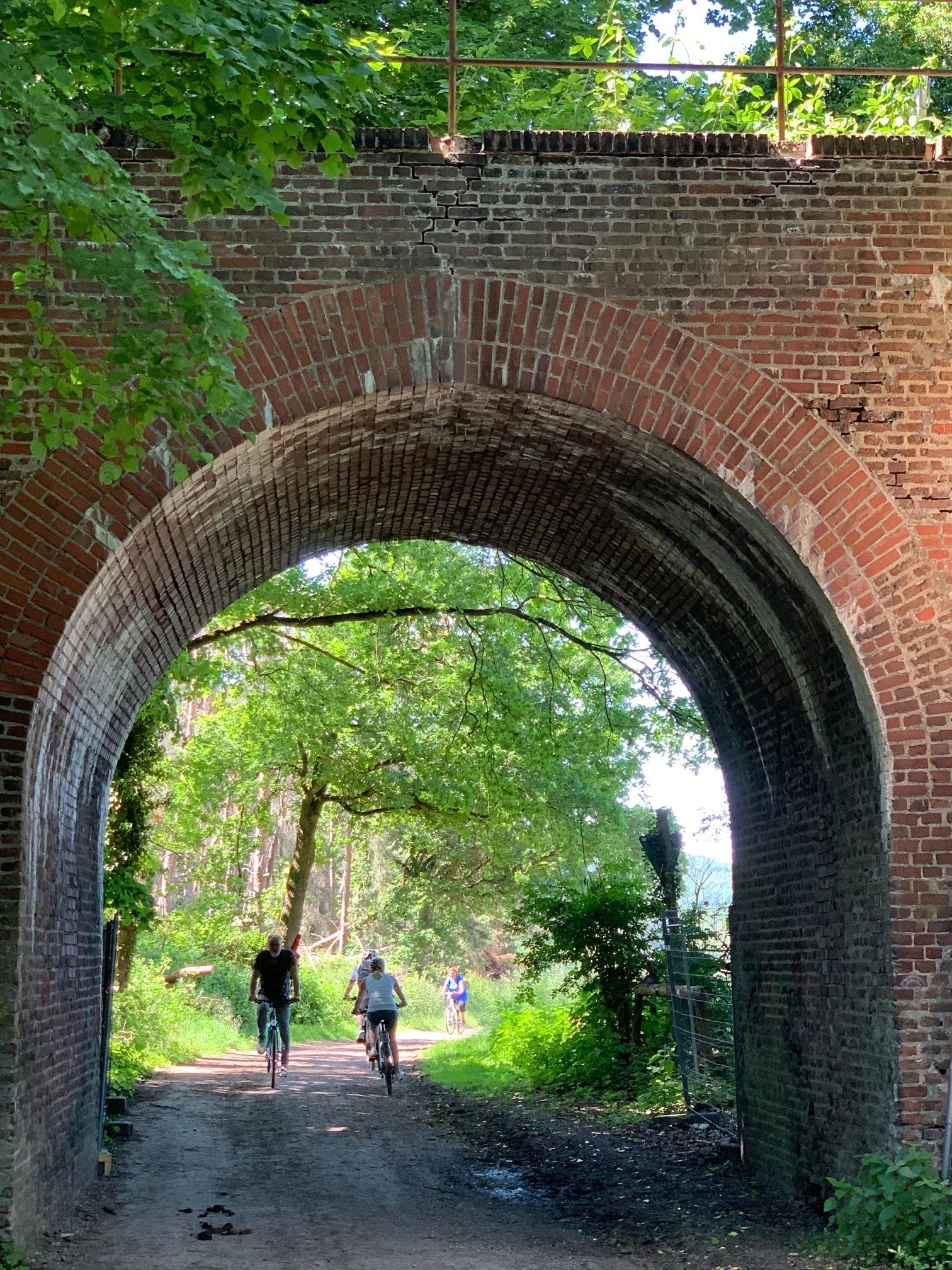 Der Alsdorfer Weiher lockt auch am Feierabend: Wie wär’s mit einer Tretbootfahrt, einem Sundowner in der Strandbar oder einfach nur im Grünen relaxen, während die Kinder auf dem Spielgelände toben? Doch zunächst heißt es Abtauchen ins Grüne: Bachaufwärts wird es wirklich wild, diesmal in der Naturvariante. Der Trubel verschwindet, die Teiche werden stiller, im Wasser spiegeln sich Erlen-Bruchwälder, mittendrin späht ein Kormoran von einem abgestorbenen Ast. Das Naturschutzgebiet Mittleres Broichbachtal bewahrt eine urwüchsige Landschaft, die wir auf attraktiven Pfaden genießen können. Auch der alte Bahndamm mit seinem Eichenwald gehört zum Naturschatz. Hier verläuft eine ehemalige Bahnlinie, die vor allem von Bergleuten des Aachener Reviers genutzt wurde. Die Kolonie Kellersberg ist eine der frühen Bergwerkswerkssiedlungen. Sie ist nach dem nahegelegenen Schloss benannt, das aus dem 14. Jh. stammte und 1897 völlig abbrannte. Der Eschweiler Bergwerksverein errichtete den heutigen Ziegelsteinbau 1906 im selben Jahr und Baustil wie die Bergarbeiterkolonie.