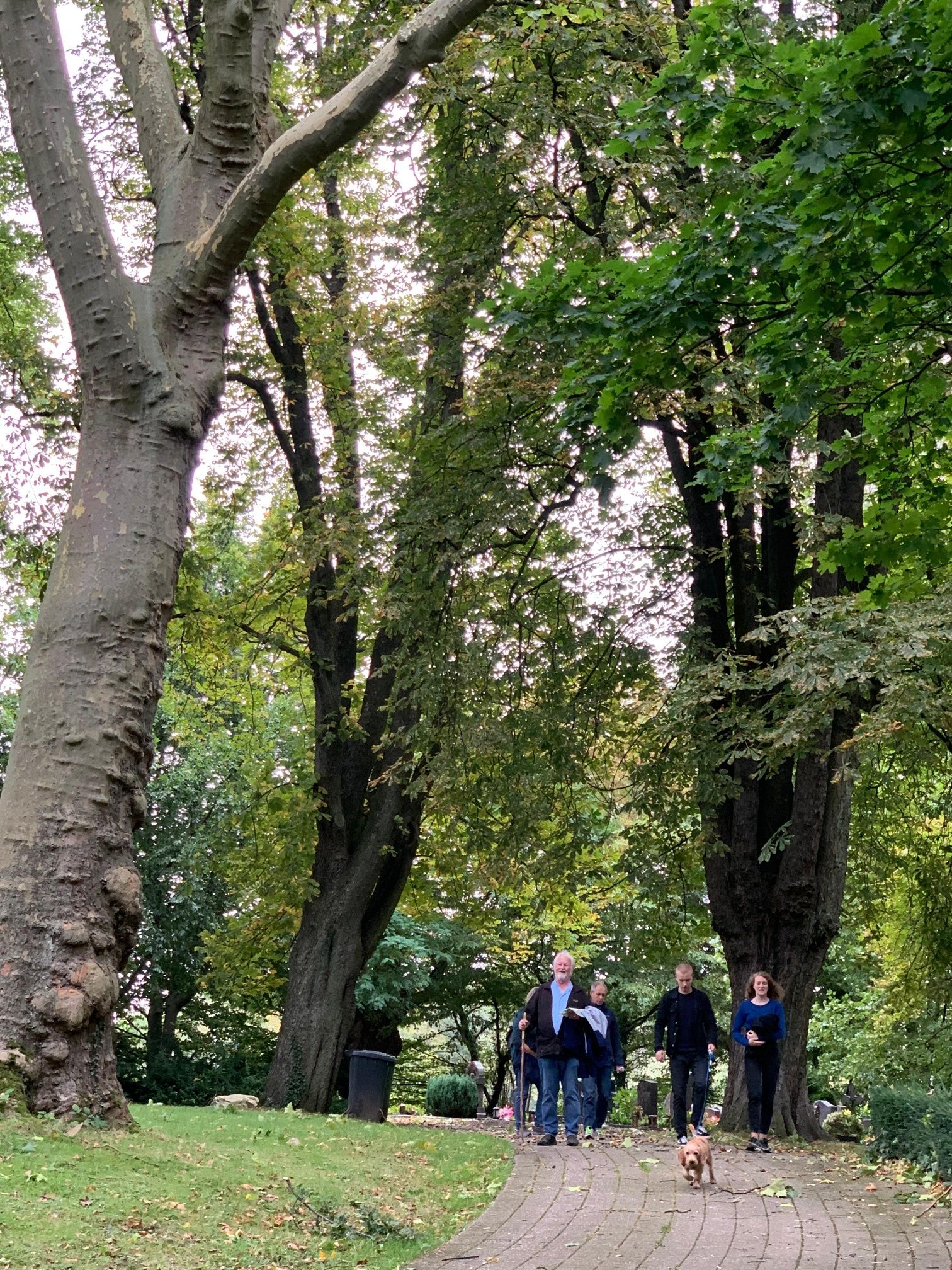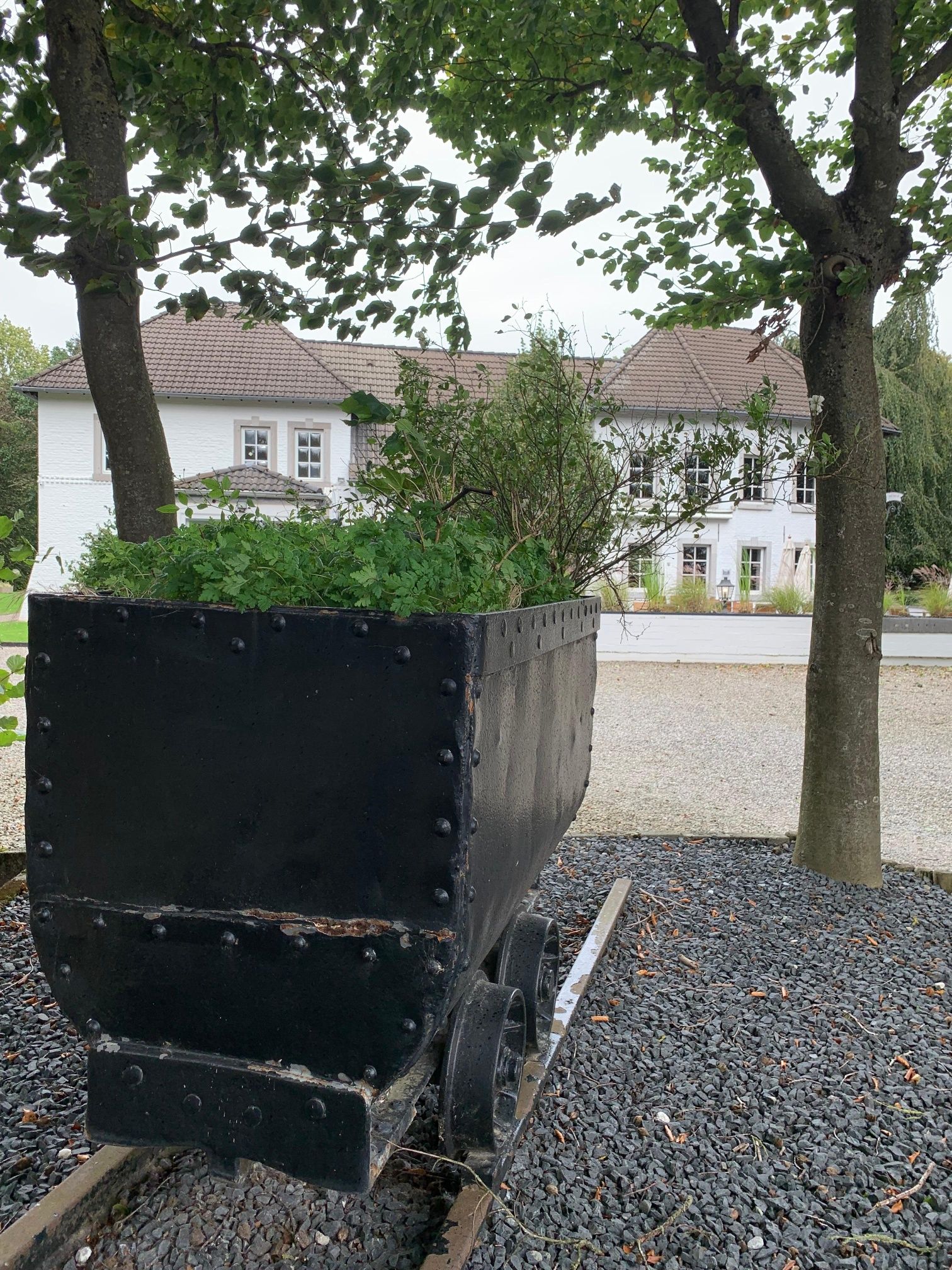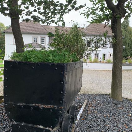 Beim Parkplatz treffen wir auf den letzten Rest des alten Schachtgebäudes , wo bis 1913 noch Kohle gefördert wurde. Eine weitere Zeitzeugin, die alte Schachtglocke, hat im Innenhof des Bürgerhauses einen neuen Platz gefunden. Ein kleiner Abstecher über den Friedhof mit seinem alten Baumbestand lohnt sich. Hier war die Grube bis 1847 aktiv, bevor sie weiter den Berg hinaufzog. Auf dem Grubengelände entstand danach ein Volksgarten. Auf dem heutigen Halbmond-Urnenfeld bewegten einst Pferde ein kreisrundes Hebewerk und hieften Kohle bergauf nach Kohlscheid.