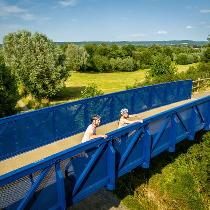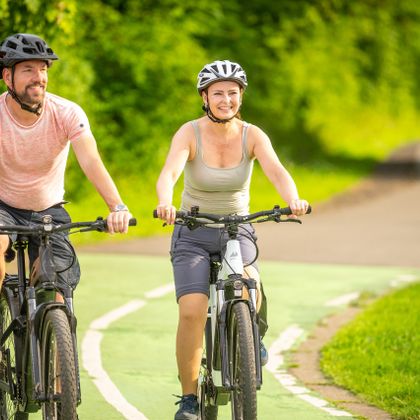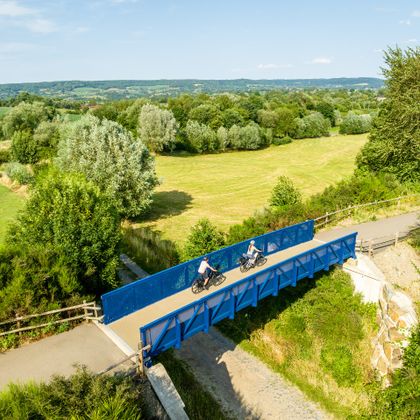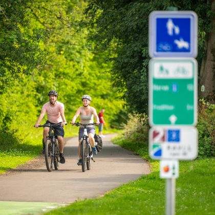 Radfahrluxus pur: Auf exklusiver Fahrbahn fährt es sich auf nahezu steigungsfreien ausgebauten Strecken mit genussvollen Pausen entspannt durchs idyllische Herver Land direkt ins Lütticher Stadtzentrum.