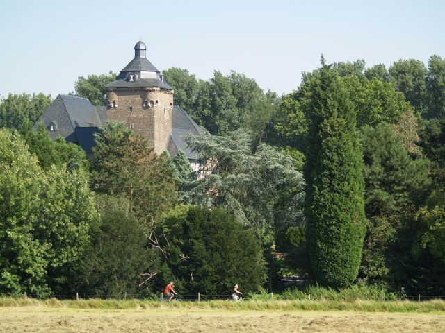 Los geht es dann in Richtung des Baesweiler Stadtzentrums vorbei am Reyplatz, bis man Baesweiler in Richtung Setterich und Puffendorf verlässt und sich stets im Schatten der ehemaligen Steinkohlegrube „Emil Mayrisch“ bewegt, welche zu den modernsten Minen Europas seinerzeit zählte. Ruhig und fernab von Verkehr geht es auf Feldwegen in Richtung Geilenkirchen, wo wir auf den Fluss Wurm treffen. Entlang der Wurm geht es ruhig und beschaulich inmitten schöner Natur- und Flusslandschaft bis zum Schloss Trips, einem Wasserschloss aus dem 15. Jahrhundert. Hier ist man nur noch einen Steinwurf von Geilenkirchen entfernt, welches wir durch das Stadtzentrum durchfahren um nur kurz danach wieder dem Verlauf der Wurm folgend weiter in Richtung ÜbachPalenberg zu fahren, wo bereits Schloss Rimburg als nächste historische Wasserburg auf uns wartet und wo wir das Wurmtal verlassen. Hier geht es kurzweilig bergauf in Richtung des Stadtzentrums, ehe es zurück nach Baesweiler geht, wo sich am Fuße der Halde unser Start- und Zielpunkt befindet. Im „Bergfoyer“ lässt sich das Erlebte nun noch einmal gemütlich Revue passieren lassen.
