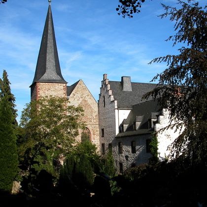 Die 17 Kilometer lange Schloss- und Höhenroute ist die Verbindung der indeland Radrouten 10 und 11. Sie verbindet spannende kulturelle und historische Orte und führt hoch und runter durchs indeland bei Langerwehe. Ein spannender Punkt auf der Route ist beispielsweise das Töpfereimuseum in dem bereits seit über 1000 Jahren die Geschichte der Langerweher Töpfer währt. Exponate, Modelle, Installationen und Filme lassen für den Besucher die Arbeitswelt der Töpfer lebendig werden. So erfährt man viel Interessantes über den gefährlichen Tonabbau in unterirdischen Schachtanlagen, das Verfahren des Steinzeugbrands oder die „Baaren“, große Vorratsgefäße. Weiter führt die Route vorbei am Kloster Wenau und unterhalb der stattlichen Laufenburg. Sportliche Radfahrer können hier einen Abstecher zur Laufeburg machen, die auf einer vom Sührbach umflossenen Anhöhe zwischen Heistern und Merode, südlich von Jüngersdorf liegt. Die Herzöge von Limburg errichteten die Laufenburg im 12. Jahrhundert, um die Grenze zum Einflussgebiet der Kölner Erzbischöfe zu sichern. Eine gute Möglichkeit für Radler im Cafe der Laufenburg eine kleine Pause einzulegen bevor es dann weiter geht auf die Route 10 zur alte Kirche auf dem Rymelsberg in Langerwehe, die im 15. Jahrhundert als dreischiffige Hallenkirche im gotischen Stil erbaut wurde. Weiter führt die abwechslungsreiche Route vorbei an der römisch-katholischen Nikolauskapelle einem der ältesten historischen und kirchlichen Baudenkmäler des Kreises Düren aus dem 11./12. Jahrhundert. Als ein ganz besonderes Highlight führt sie ausdauernde Wanderer oder Radler bis zum Schloss Merode, welches zu den beeindruckendsten Herrschaftssitzen in der Region zählt. Auf Schloss Merode finden zahlreiche einzigartige musikalische und kulturelle Veranstaltungen statt, die sich mit einem Spaziergang oder einer Fahrradtour bestens kombinieren lassen.