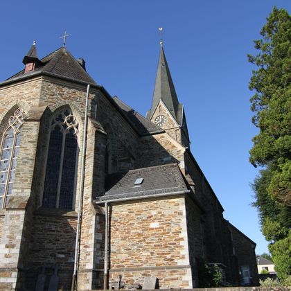 Die Tour startet an der Kirche St. Johann Baptist in Lammersdorf, die 1902 in neugotischem Stil errichtet wurde und noch heute fasziniert durch farbenfrohe Ausmalung, prächtige Holzaltäre und schwarze Marmorsäulen. Dabei handelt es sich um eine der wenigen Kirchen, die die Schlacht um Hürtgenwald 1944/45 nahezu unbeschadet überstanden haben.