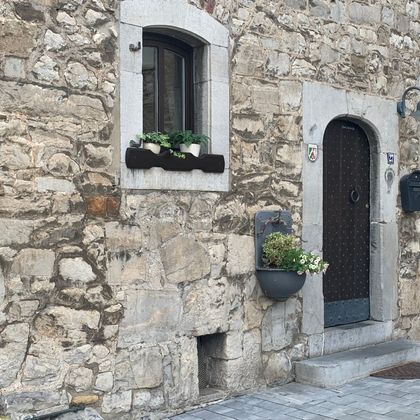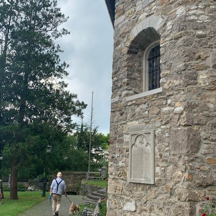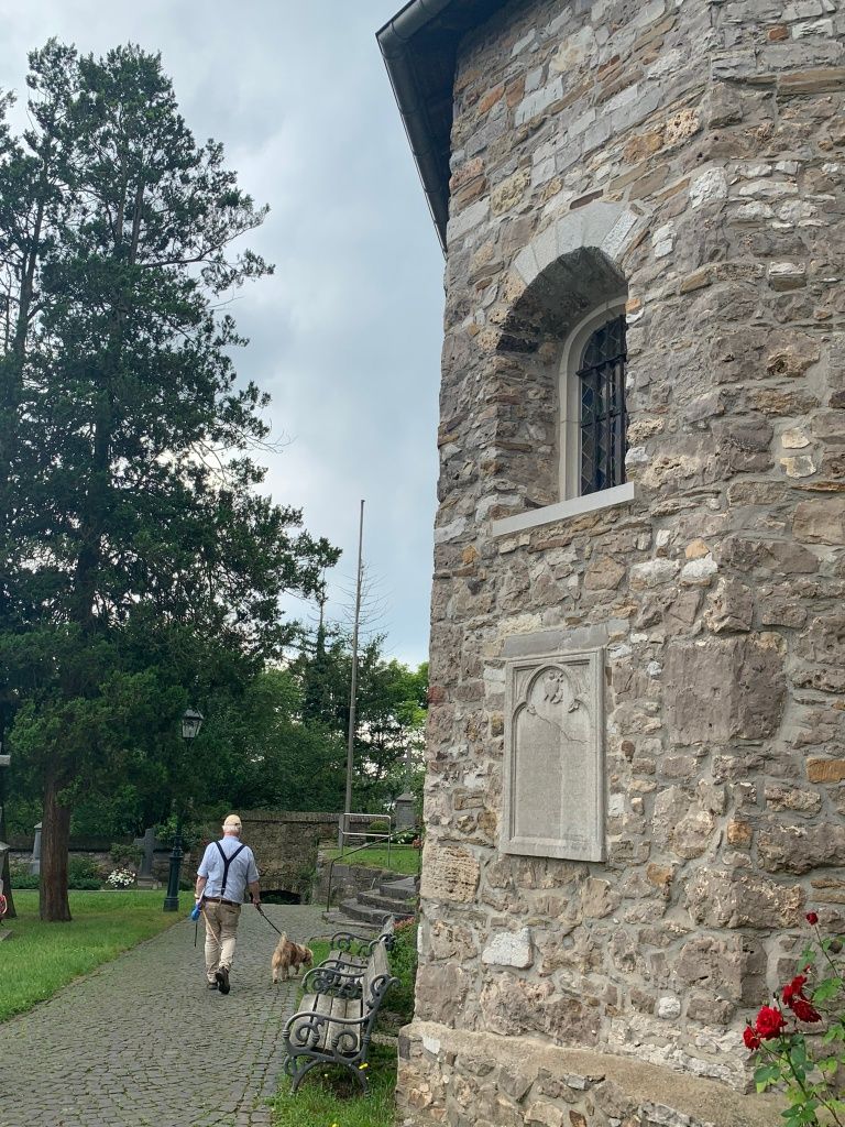 Dann heißt es Weite genießen. Aus dem Wäldchen geht es hinaus im sanften bergauf, bergab über Feld- und Wiesenwege mit herrlichen Ausblicken über die ausgedehnte Weide- und Heckenlandschaft des Münsterländchens. Nach kurzem Ortsdurchgang durch das Dorf Krauthausen mit alten Bruchsteinhäusern kehren wir zurück in die grüne Weite, bis uns kurz vor Kornelimünster Varnemum als nächster Rückzugsort empfängt. Ruinen zeichnen den Grundriss des einstigen Tempelbezirks nach. Hier befand sich etwa seit Christi Geburt bis zum Ende der Römerherrschaft ein gallo-römischer Kultplatz und Tempel, der den Göttern Varneno und Sunuxal gewidmet war, im Umfeld fand man Reste einer Siedlung. Bis heute hat der weite, erhabene Platz nichts von seiner Anziehungskraft verloren. Wir nutzen ihn zur kontemplativen Verschnaufpause. Dann tauchen wir in den Wald ein und erreichen am hochgelegenen Ortsrand von Kornelimünster die Bergkirche St. Stephanus, einst Pfarrkirche des Münsterländchens, deren Turm und Krypta bis ins 9./10. Jh. zurückgeht. Gemächlich geht es bergab zurück in den quirligen historischen Charme von Kornelimünster.