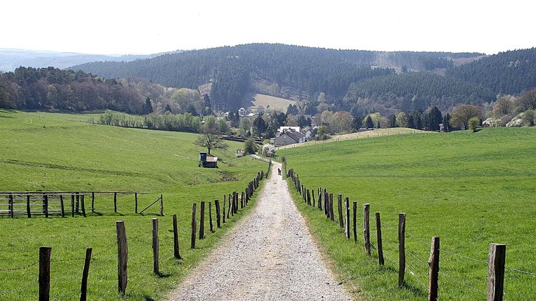 Abwechslungsreich führt der Pfad über 13,6 km durch Wiesen und Felder rund um Stolberg-Vicht, über Bergkuppen und durch schattigen Hochwald.