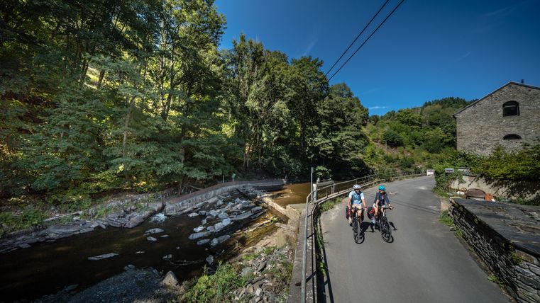 Die Tour führt dich direkt am Anfang durch den einzigen Nationalpark in Nordrhein-Westfalen. Du fährst durch von Buchen geprägte Wälder und erlebst die 110 Quadratkilometer geschützte Natur der Eifel. Auf diesem Streckenteil musst du ein bisschen fester in die Pedale treten, da es bergauf geht.