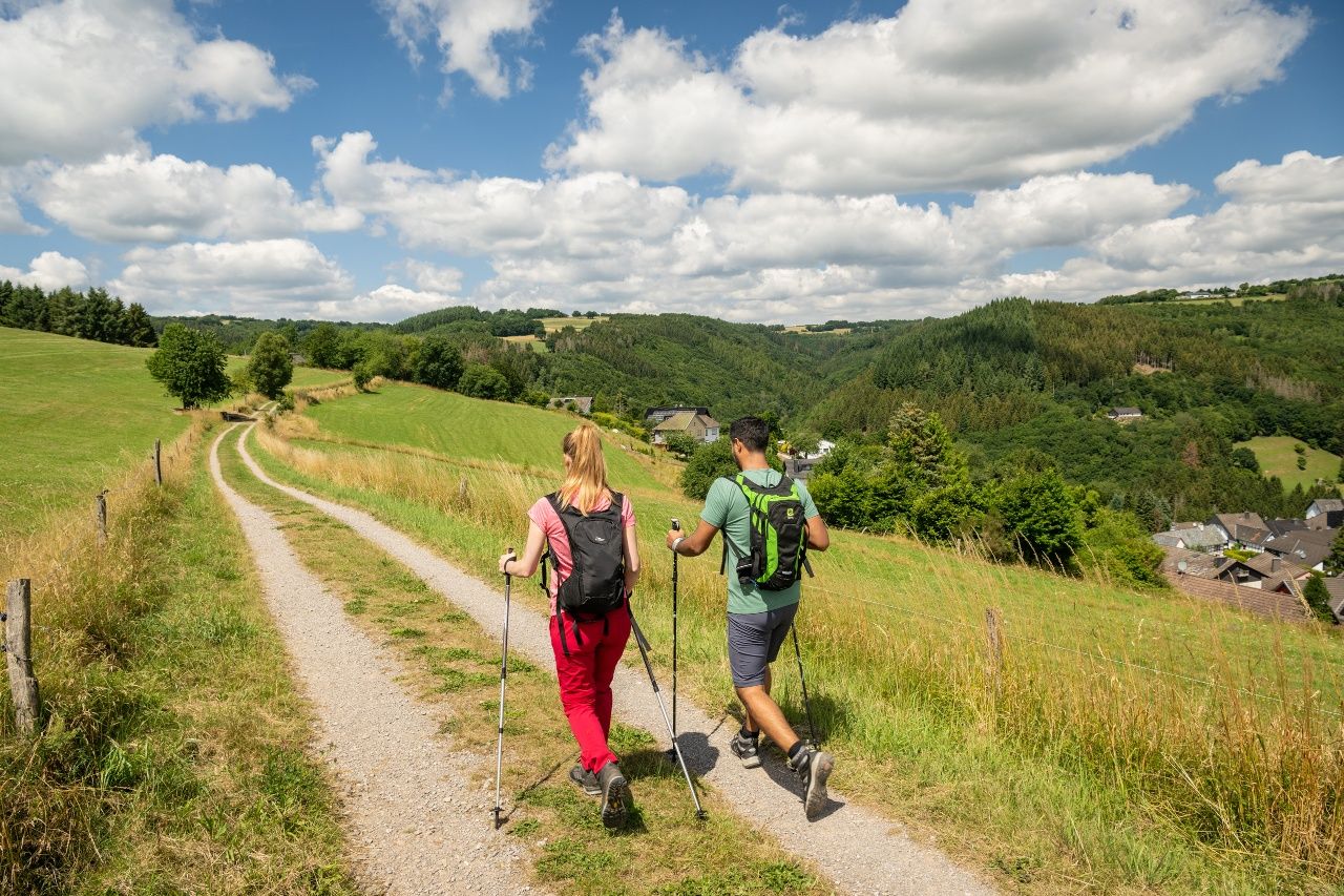 Die Heckenlandroute führt einen durch abwechslungsreiche Grünlandschaften, sowohl herauf als auch herab. Wandern Sie im Tal an der Rur entlang oder genießen Sie den Ausblick von der Höhe auf das Rurtal. Natur pur durch die Mischwälder der Eifel.