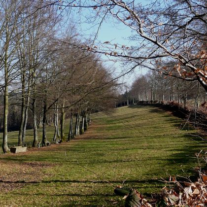 Nach dem Verlassen des Waldes schlängelt sich der Weg zwischen mächtigen Buchen und dichten Hecken durch das uralte Kulturland von Menzerath. Kurz vor der Straße erhebt sich rechterhand eine Bruchsteinmauer. Hinter ihr verbirgt sich ein alter Friedhof mit prächtigen Grabplatten, den Sie sich nicht entgehen lassen sollten. Zwischen 1678 bis 1862 wurden dort neben Geistlichen der evangelischen Kirchengemeinde zahlreiche Angehörige der Monschauer und Imgenbroicher Tuchmacherfamilien beigesetzt. Das Eschbachtal kreuzend und vorbei an der Jugendherberge Hargard erreichen Sie nach Überquerung der Bundesstraße über einen Heckenweg den Ortsrand von Imgenbroich. Doch vor der Rückkehr zum Ausgangspunkt sollten Sie sich auf einer 1,4 Kilometer kurzen Schleife unbedingt noch einige besondere Sehenswürdigkeiten westlich des Dorfes anschauen. Wo heute, von Bäumen umrahmt, ein gesprengter und mit Erde überdeckter Bunker liegt, befand sich der Friedhof Walchenau, der zwischen 1600 und 1794 als erste Begräbnisstätte der Lutheraner und Reformierten des Monschauer Landes diente.