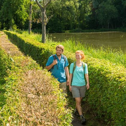 Von dem alten Hof De Winselerhof, der heute als Hotel genutzt wird und wo du bequem parken kannst, wanderst du direkt in das wunderschöne Naturschutzgebiet zwischen Kerkrade und Landgraaf. In diesem Strijthagerbeektal findest du prächtige, dicht bewachsene Hänge sowie Gilbweiderich und Gartenkresse entlang des lieblichen Bachs. Hier versteckt sich der Dachs, fliegt der Goldammer und es wimmelt von Schmetterlingen. Du folgst dem Strijthagerbeek ganz bis zum eleganten Schloss Strijthagen entlang der roten Pfähle mit dem hellgrünen Band. Falls du Anmerkungen zur Route hast, kannst du diese melden über routepunt@visitzuidlimburg.nl. Eine vollständige Wanderkarte mit vielen weiteren Wanderwegen in dieser Region ist einfach über www.webshop.visitzuidlimburg.nl bestellbar.