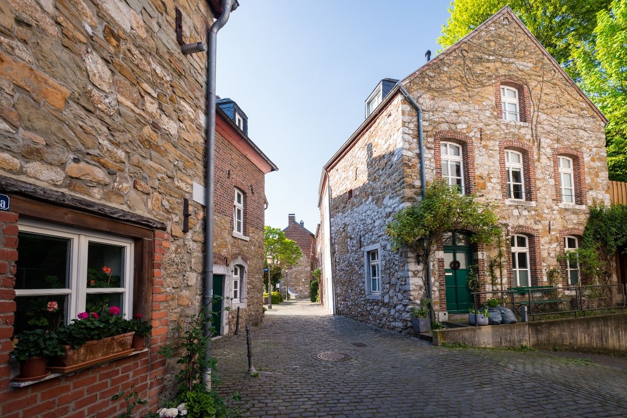 Nun geht es wellig aber überwiegend flach durch schöne ländliche Landschaften zurück in Richtung Raeren und Kornelimünster. Die historische Altstadt Kornelimünsters ist hier definitiv noch eine Pause oder Fotostopp wert. Ab hier ist es nur noch ein Katzensprung bis zum Startpunkt der Tour und die letzten 7 km bieten zwar noch ein paar kurze knackige Anstiege, sind jedoch schnell eingefahren und man findet sich kurze Zeit später in der historischen Altstadt der Kuperstadt Stolberg wieder.