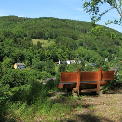 Zuerst führt die Rundwanderung durch den wunderschönen Eifelort Hammer vorbei an der alten Kirche, dem Hammerwerk und zahlreichen Fachwerkhäusern. Am Ortsausgang führt der Weg entlang der Rur und bringt Sie über eine naturbelassenen Pfad in die Höhe der Eifelwälder. Oben angekommen werden Sie für Ihre Mühen belohnt. Dort bietet sich eine wunderschöne Aussicht auf das malerische Rurtal mit seinen steilen, bewaldeten Hängen und auf den verschlungenen Lauf des Flusses Rur. Auch Hammer selbst mit seinen urigen Fachwerkhäusern ist gut zu sehen. Eine Bank lädt zum Rasten und Verweilen ein.