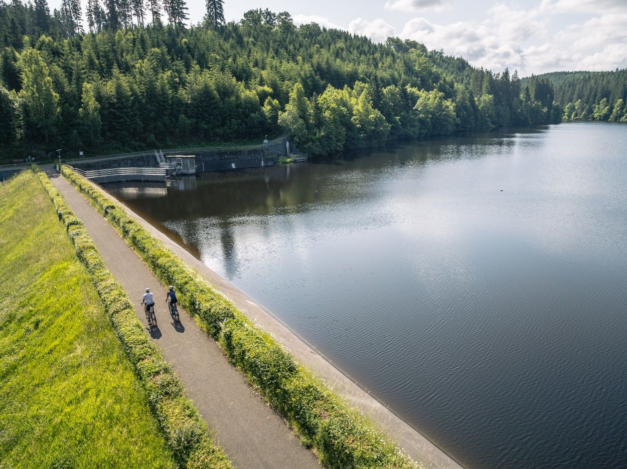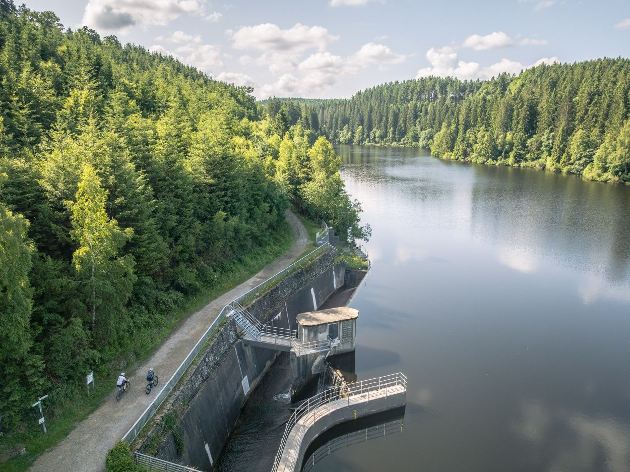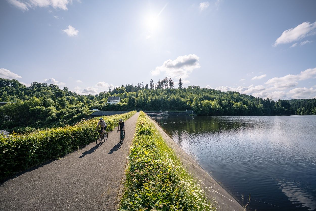 Kürzere, aber knackige Anstiege fordern deine Beine, bevor es auf flowigen Abfahrten wieder bergab geht. Die Mischung aus überwiegend Waldpassagen aber auch offenen Abschnitten sorgt für Abwechslung – eintönig wird es hier garantiert nicht! Ein Highlight ist die beeindruckende Perlenbachtalsperre, aber auch das Perlen- und Fuhrtsbachtal sowie das mittlere Rurtal versprechen eindrucksvolle Naturlandschaften. Ein echtes Naturdenkmal erwartet dich in Rohren: die imposante Bergulme.