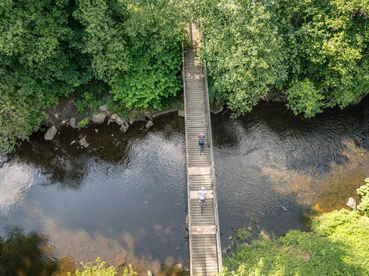 Ein Highlight: der Abschnitt auf der Vennbahn mit historischem Flair. Gönn Dir den Blick auf die Burg Monschau – am besten vom Eifelblick aus – und eine Pause an der Köhlerklause mit ihrem historischen Sägewerk am Kluckbach.