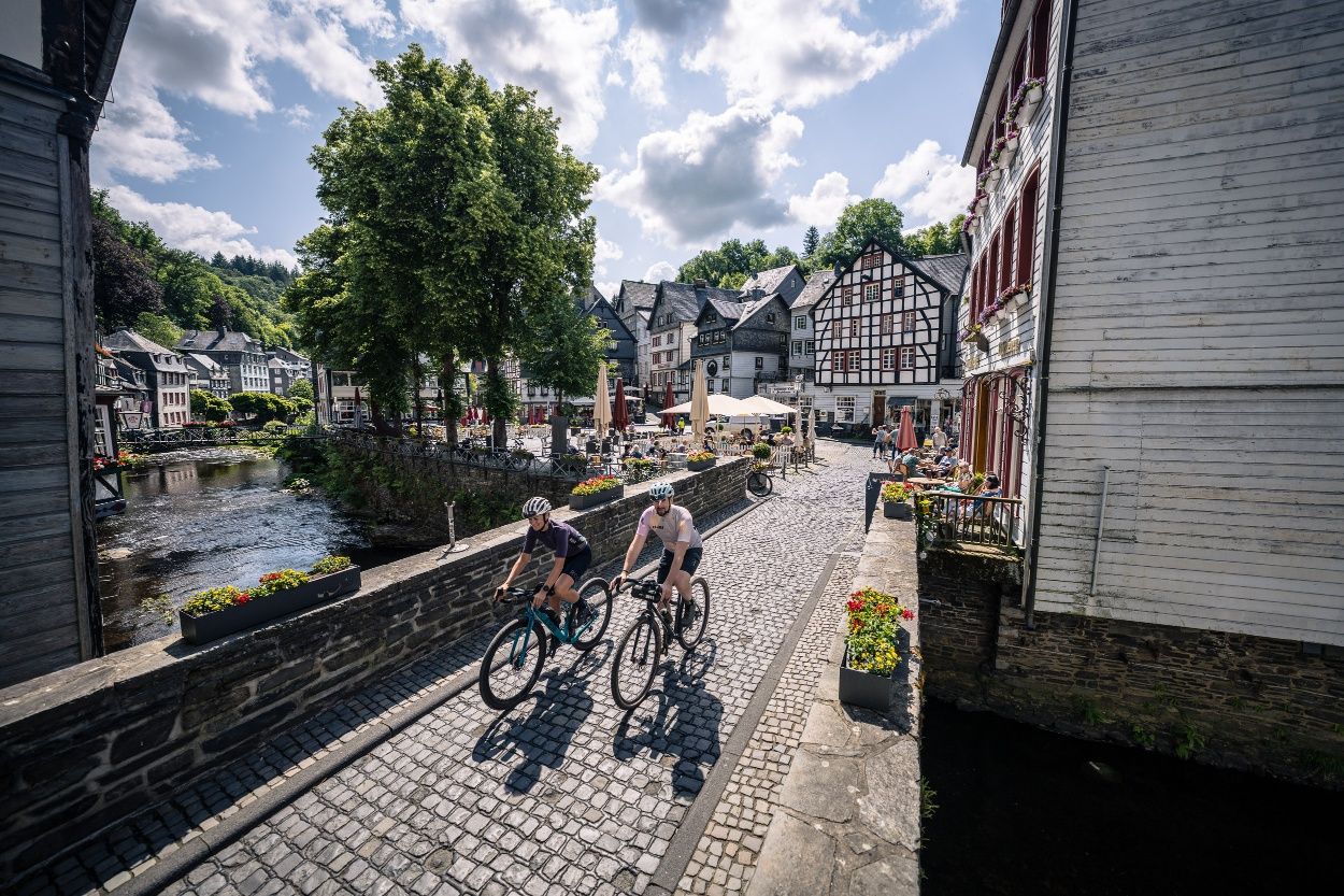 Diese anspruchsvolle Graveltour mit abwechslungsreichen Berg- und Tal-Profil verbindet knackige Anstiege, wilde Abfahrten und echte Eifelmomente – von der historischen Altstadt Monschau bis zum verwunschenen Baumlehrpfad im Rurtal.