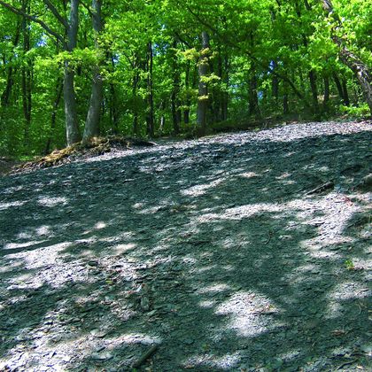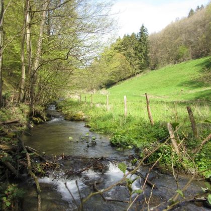 Wenn Sie am Kirchplatz in Simmerath starten, treffen Sie bald auf das Naturschutzgebiet Tiefenbachtal. Sobald man die ersten Bäume eines Wäldchens hinter sich gelassen hat, ist die Mariagrube in Sichtweite. Dieser ehemalige Schieferbruch aus dem 19. und 20. Jahrhundert ist eines der frühesten „Wirtschaftsunternehmen“ Simmeraths. Von 1847 bis etwa 1924 wurde hier unterirdisch Schiefer abgebaut. Eine Abraumhalde erinnert noch an die jahrzehntelange Schieferförderung.