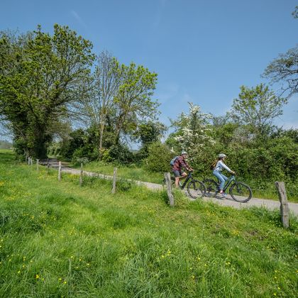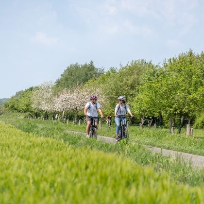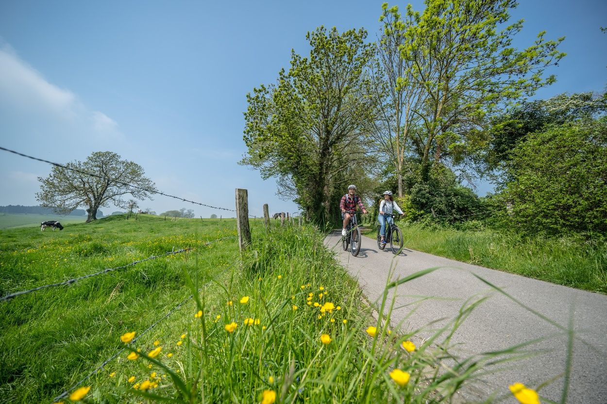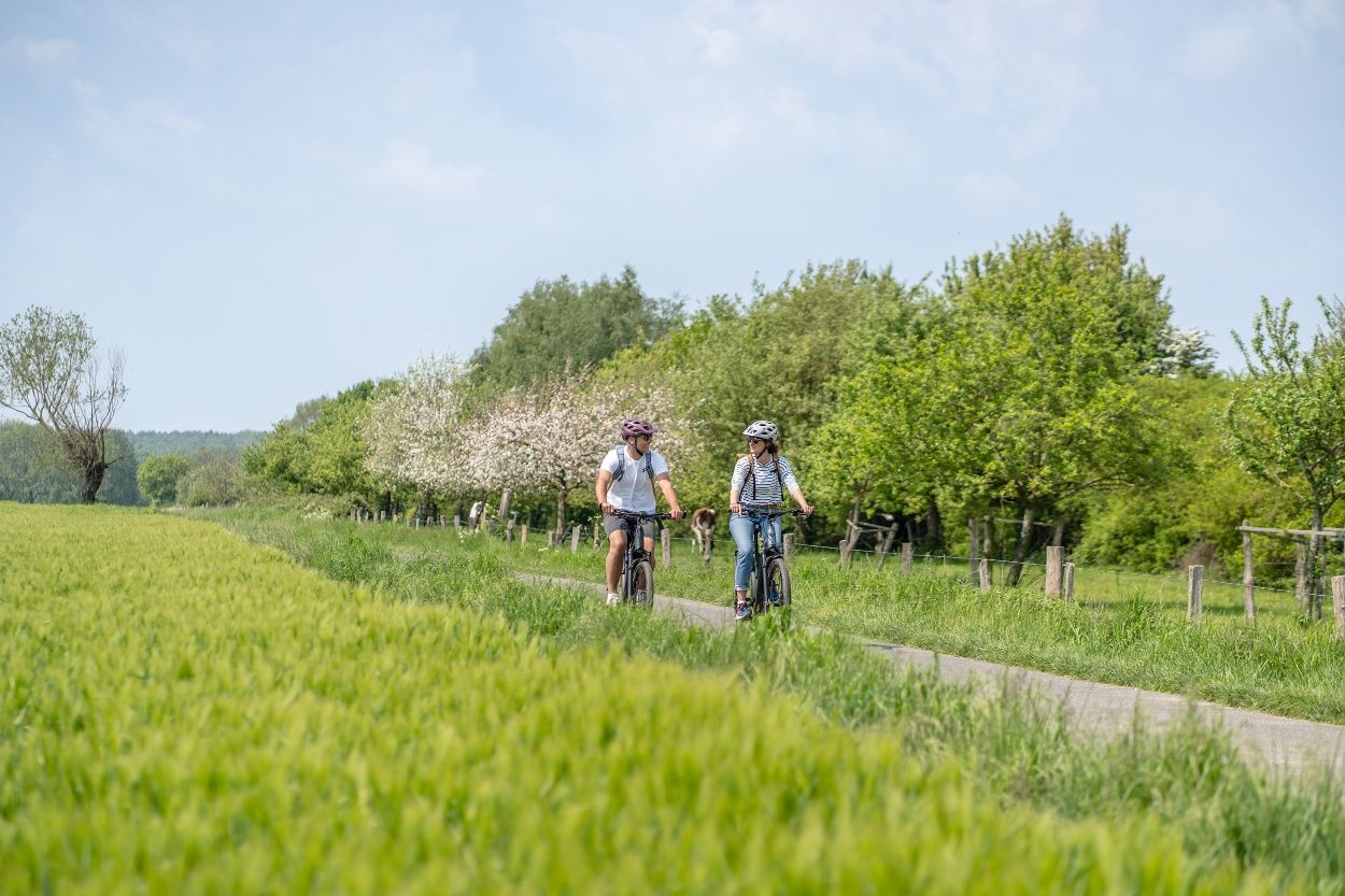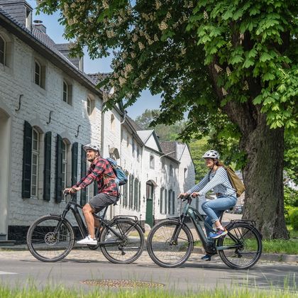 Nach entspannter Abfahrt durch limburgische Mergellandidylle mit Fachwerkhöfen, vorbei an Kasteel Vaalsbroek übernimmt der Senserbach die Grenzfunktion des Landgrabens. Unbeirrt setzen sich die Mergellhöhen auf deutscher Seite fort. Oben auf dem sanft gewellten Plateau mit Traumaussicht wird schnell klar, dass der Kreidemergel fruchtbare Böden hervorgebracht hat. Bis heute zeugen imposante Höfe in Orsbach, Horbach, Vetschau, Uersfeld und Laurensberg von der Bedeutung für die zuständigen Herrschaft in Aachen und Jülich. Viele Gebäude stammen aus dem 16./17. Jh., einige haben noch ältere Wurzeln. So haben die Niersteiner Höfe oder Burg Seffent schon für Kaiser Karls Lebensmittelvorräte gesorgt.