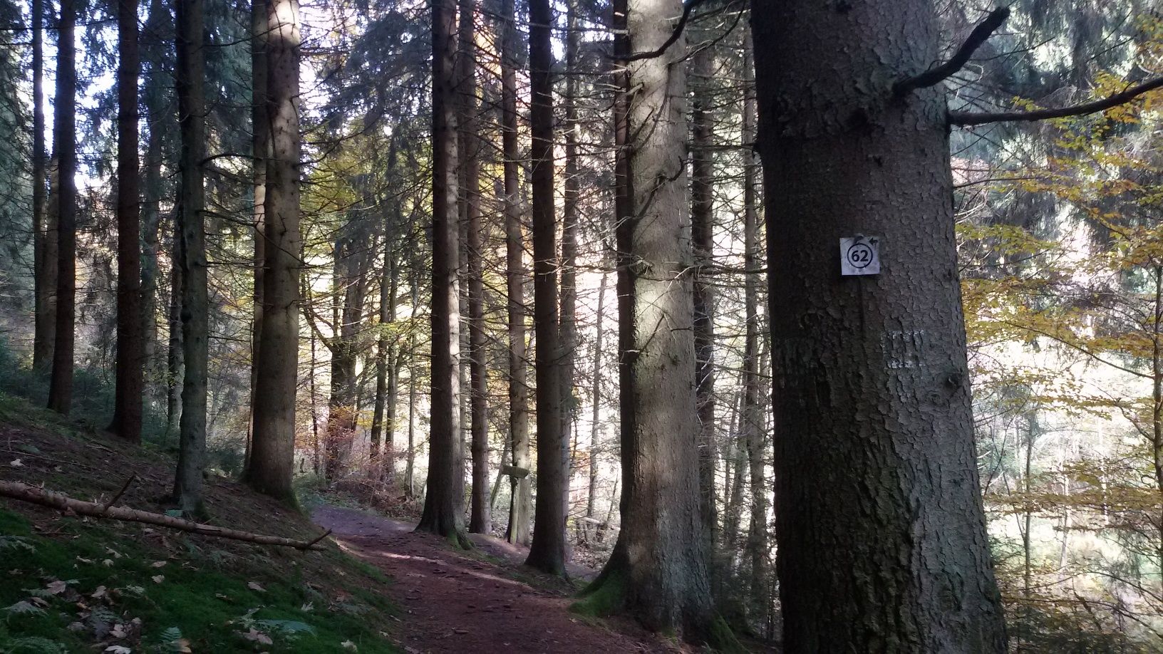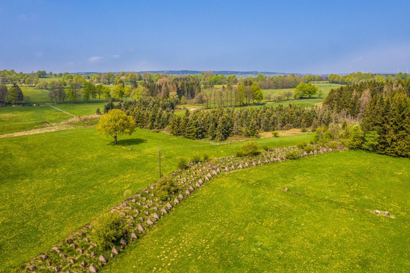 Nach einem kurzen Anstieg führt der Weg zunächst am Waldrand vorbei. Südlich der K 21 lädt ein Kreuz zum Gedenken an vier Imgenbroicher Einwohner ein, die dort während der heftigen Kämpfe des 2. Weltkrieges getötet wurden.Weitere Relikte jener unseligen Zeit sind die Schützengräben, die Sie beim Aufstieg durch den Fichtenwald passieren. Durch das schmucke Wohngebiet „Belgenbacher Weg“ gelangen Sie nach der Überquerung der Grünentalstraße in die südliche Wiesenlandschaft Imgenbroichs. Der kleine Ort Menzerath überrascht mit einem weiteren kulturellen Highlight. Hinter einer hohen Bruchsteinmauer verbirgt sich ein alter Friedhof mit imposanten Grabsteinen. Neben Geistlichen der vangelischen Gemeinde fanden zahlreiche Angehörige der Imgenbroicher und Monschauer Tuchmacherfamilien hier zwischen 1678 und 1862 ihre letzte Ruhestätte. Nach der Überquerung des Eschbachs und vorbei an der Jugendherberge Hargard erreichen Sie jenseits der B 258 das für die Region typische Heckenland. Die 1,4 Kilometer kurze Schleife westlich des Ortes bietet zum Abschluss der Wanderung erneut einige Besonderheiten. Vor einer mit mächtigen Bäumen eingerahmten Parzelle erinnert ein Steinkreuz an den Friedhof Walchenau, zwischen 1600 und 1794 die erste Begräbnisstätte der Lutheraner und Reformierten im Monschauer Land. Am westlichsten Punkt der Route treffen Sie erneut auf ein Relikt des 2. Weltkrieges: die als Panzersperre errichtete „Höckerlinien“ des „Westwalls“. Doch die rund 500 Meter lange Strecke über den Rand des Fundaments bietet mehr als ein Überbleibsel aus jener unseligen Zeit. Wo ursprünglich das Verderben lauerte, sind inzwischen wertvolle Biotope entstanden.