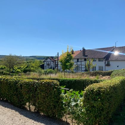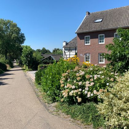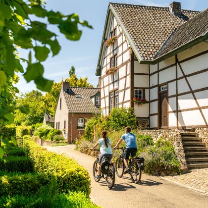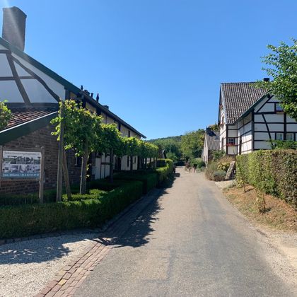 Fachwerkhäuser prägen mit ihren schwarzen Balken und weiß gekalktem Lehm das Bild. Auf belgischer Seite werden sie von Bruchsteinhäusern abgelöst. Viele sind eingetragene Denkmäler und haben über 400 Jahre auf dem Buckel. Die kalkreichen fruchtbaren Böden boten von je her günstige Voraussetzungen für die Landwirtschaft. Auf unserer Radtour begleiten uns weite grüne Weiden, Ackerflächen, Obst- und Bauerngärten und Gelegenheiten, Produkte des Heuvellands zu kaufen und zu verkosten. So manches Fachwerkhaus hat sich herausgeputzt. Im Mix aus Tradition und Chic haben Ferienwohnungen und Gastronomie Einzug gehalten und werben um Gäste.