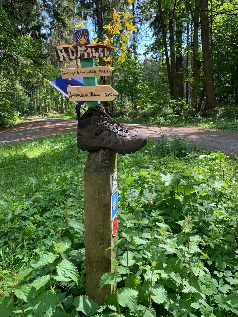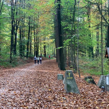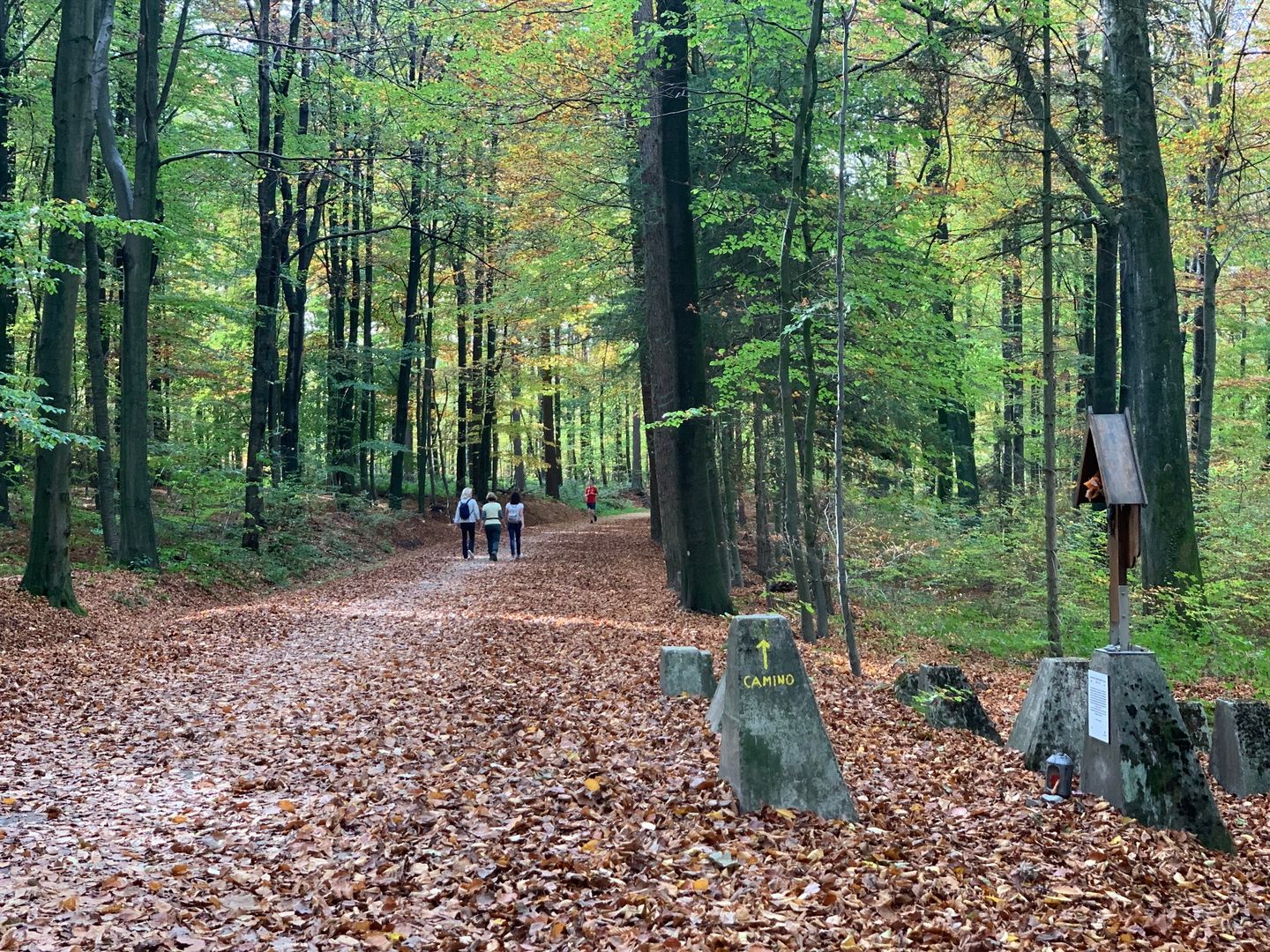 Zurück geht es über den Königsweg, eine populäre Wanderpiste zum Dreiländerpunkt. Schnell wechselt die Begrüßung zwischen „Hallo“, „Middag“ oder „Bonjour“ und verrät die Herkunft des vielfältigen Publikums. Schon bald erreichen wir die nächste Pilgerroute, diesmal im eigentlichen Sinne. Seit 1863 wird der acht Kilometer lange Bittweg, der auch Teil des Jakobswegs ist, von den Mittwochspilgern einmal wöchentlich zur Pilgerschaft von Aachen nach Moresnet-Chapelle genutzt. Der Weg im Grenzwald hat im Laufe der Geschichte so manchen als Fluchtroute in Kriegszeiten oder als Schmuggelroute gedient. An den Betonzähnen des Westwalls treffen sich Krieg und Frieden. Von den Nazis noch als unüberwindliche Verteidigungslinie propagiert, war das Bollwerk von 1938/39 bereits fünf Jahre später veraltet und konnte der Befreiung durch die Alliierten nicht viel entgegensetzen. Das benachbarte Pilgerkreuz gedenkt der Kriegsopfer und mahnt zum Frieden in Europa.