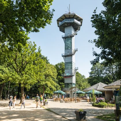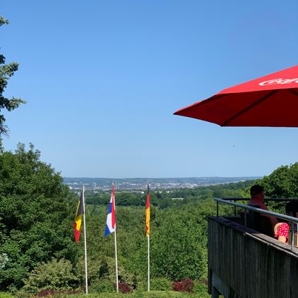 Mit Aussicht auf den Westen der Stadt geht es hinauf zum Dreiländerpunkt. Adlerstein und eine Spielstation des Naturerlebnispfades lassen alte und gegenwärtige Grenzen im Wald erleben. Wir treten aus dem Waldversteck und genießen das stillere Ende des Dreiländerpunktes mit Aussichtsturm nebst Skywalk und Gastronomiebetriebe mit herrlichen Aussichtsterrassen. Nach der Pause nutzen wir den stillen Waldweg entlang der alten Landgrabengrenze, abseits von Autoverkehr. Am Ende der Parallelstrecke kann, wer will, in den Dreiländertrubel eintauchen hier warten: Dreiländerpunkt, höchster Punkt der Niederlande, Labyrinth und Baudouin-Aussichtsturm.
