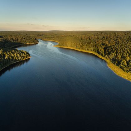 Vom Haus Ternell führt der Weg sofort in den großen Wald. Im Osthertogenwald sorgen Buchen und Eichen für eine wunderschöne Herbststimmung. Zu unseren Füßen säumt eine Fülle von Pilzen den Weg. In der Talmulde treffen wir auf die Hill. Der Lauf dieses Baches, mit seinem schwarzen und sehr säurehaltigen Wasser, formte einst eine Grenzlinie: Die Grenzsteine, die Sie auf Ihrem Weg kreuzen, bildeten zu Beginn des 20. Jahrhunderts die Grenze zu Deutschland. Lassen Sie sich vom Weg entlang der Hill bezaubern! Der wilde Weg folgt eindrucksvoll dem Fluss und führt hier und dort durch Steile und schräge Passagen. Eine Wanderung für die sportlichen unter uns. Auf halber Strecke steigt der Weg steil an. Sie überqueren die Monschauerstraße. Von hier aus führt der Wanderweg in ein neues Tal, das durch den Getzbach geformt wird, der in den See flussabwärts mündet. Hier ist die Talmulde enger und dunkler. Kurz nach der Holzbrücke treffen Sie wieder auf die weiten fichtenübersäten Ebenen.