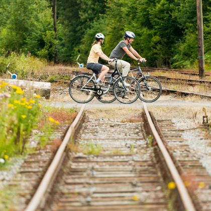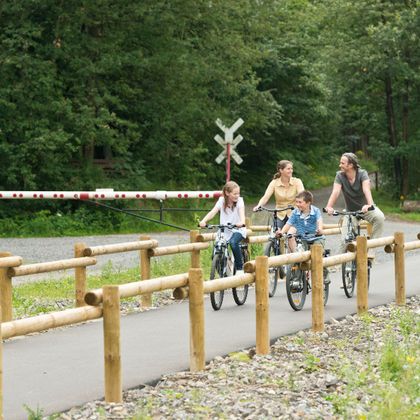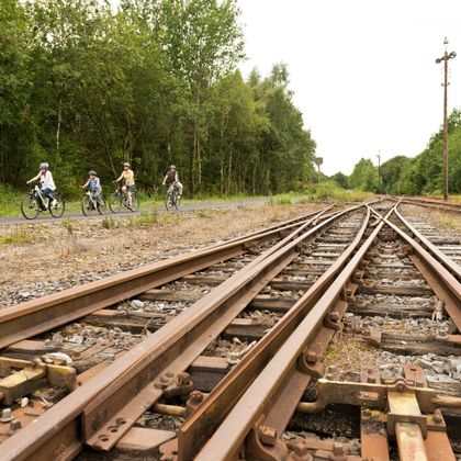 Über die Vennbahn, auf der einst mit Roheisen beladene Güterzüge von Luxemburg nach Aachen fuhren, radeln wir schließlich in weitläufigen Kurven durch die unbewohnten Waldgebiete des Raerener Waldes zurück zum Startpunkt nach Roetgen, wo die Tour endet.