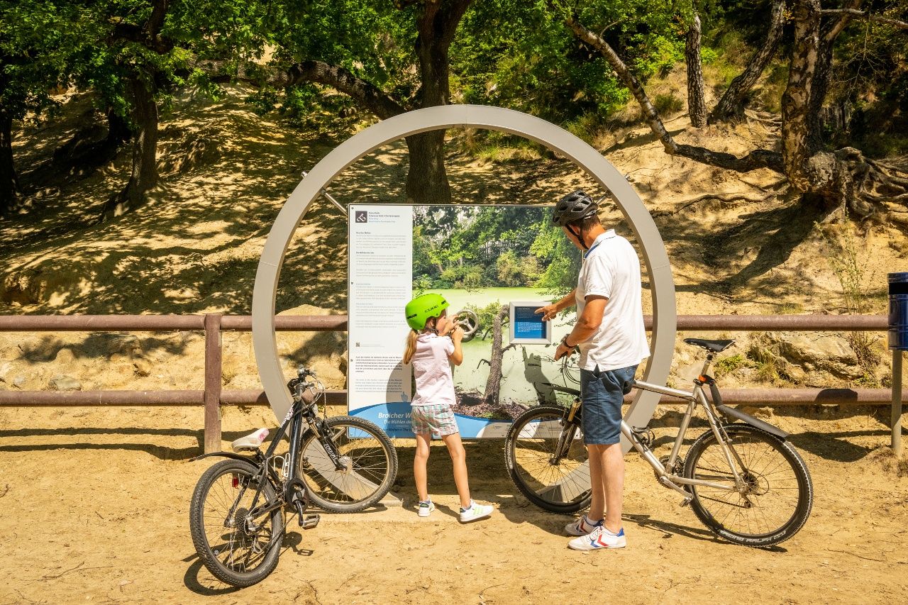Die Tour beginnt am Energeticon. Das Restaurant Eduard bietet für den Start frischen Kaffee und Snacks an. Sie gehen erstmal den „Weg der Energie“ entlang des Annaparks zum Fördergerüst. Dies ist die erste Expertenstation, wo ein Steiger interessante Infos zum Fördergerüst gibt. Es passen leider immer nur 15 Personen gleichzeitig auf das Gerüst. Bitte ggf. etwas Wartezeit einkalkulieren. Von dort aus geht es über die Bahnhofstraße hinunter bis zum Bahnübergang und weiter entlang des Haldenfußes Anna 1. Wir queren an der Ampel die Bundesstraße in Richtung Tierpark, biegen aber vorher links ab und folgen dem Alsdorfer Weiher. Im Broichbachtal erwartet Sie eine verwunschene Landschaft, die sie durchwandern. An der Kellersberger Mühle queren Sie die Straße Am Kellersberg und gehen nun hinauf an der linken Flanke des Broichbachtals. Achten Sie auf die Ausschilderung, denn der kleine Trampelpfad windet sich weiter den Hang hinauf und ein wenig wieder hinab. Sie queren einen Waldweg wieder entlang des Broichbachtals. Wenn Sie den Broicher Weiher erreichen mit einem schönen Blick auf das Wasser halten Sie sich rechts zur Broicher Mühle, an der sie dann im spitzen Winkel direkt rechts abbiegen und auf der anderen Seite des Broichbachtals zurückwandern. An einer T-Kreuzung erreichen Sie die die 2. Expertenstation der biologischen Station. Der Weg führt weiter auf dem Radweg Richtung Euchen und erst kurz vor dem Gnadenhof biegen Sie rechts ab in Richtung Schleibach, wo schon bald die 3. Expertenstation im Weidenhof mit tollen Infos zu den Möglichkeiten des Mensch-Pferd Coachings auf Sie wartet und auch ein frisch gebrautes FrOnk Bier gibt es dort zur Stärkung. Anschließend gehen Sie unterhalb der Siedlung und biegen vor Ofden links ab und folgen dem Waldrand. Hier wartet sie eine schöne unbefestigte Wanderstrecke. Vor der B 57 geht es rechts rauf und über einen ausgeschilderten Waldpfad Richtung Tierpark. Achten Sie auf die Ausschilderung zur 4. Expertenstation am Erdmännchen-Gehege mitten im Tierpark, wo sie der Leiter des Tierparkes in seine Tierwelt mitnimmt. Weiter in Richtung Unterführung der B57 geht es durch das Broichbachtal und einen verschlungenen Wanderweg bergauf zur Siedlung Zopp. Sie überqueren die L47 und erreichen bald die nächste Expertenstation am Haldenfuß Noppenberg. Dort erwartet Sie zum Abschluss ein toller Aufstieg zum Haldenplateau mit einem fantastischen Ausblick. Unser Bergmann wird Sie gerne überzeugen, dass der Aufstieg sich lohnt. Zum Abschluss führt der Weg hinunter, über den Bahnübergang Richtung Busch zurück zum Ausgangspunkt, dem ENERGETICON, wo sie die letzte Expertenstation mit einer Führung im Museum erwartet, wenn Sie diese gebucht haben. Wir wünschen viel Freude beim Wandern und staunen sie über die Schönheit des Aachener Landes, die Sie vielleicht gar nicht erwartet hätten.Zum Abschluss führt der Weg hinunter, über den Bahnübergang Richtung Busch zurück zum Ausgangspunkt, dem ENERGETICON, wo Sie die letzte Expertenstation mit einer Führung im Museum erwartet, wenn Sie diese gebucht haben. Ansonsten können sie sich im Eduard mit leckeren spezielle Essens- und Getränkeangeboten verwöhnen lassen. Wir wünschen viel Freude beim Wandern …