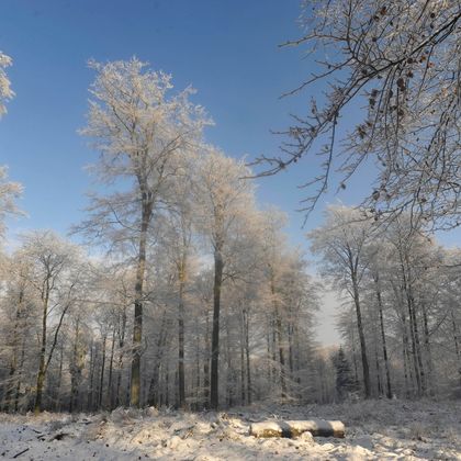 Der Abstieg ist lang und wird stets durch das bezaubernde Rauschen des Baches begleitet. Hier beginnt dann der Aufstieg. Im Schnee werden die Beine schwer. Je höher es hinaufgeht, umso mehr spürt man die Wirkung des Ostwindes, der die vereisten Baumkronen mit Schnee bepudert hat. Vom Gipfel aus führt der Weg entlang des Edesbaches hinunter: Der Wald Wolfsseif bedeckt ein schroffes Relief. Diese zwölf Kilometer präsentieren sich sehr abwechslungsreich und lassen keine Langeweile aufkommen. Der Wind lässt unser Lächeln auf den Lippen gefrieren: Wir sind glücklich eine der schönsten Regionen des Landes mitten im Winter zu Fuß durchquert zu haben.