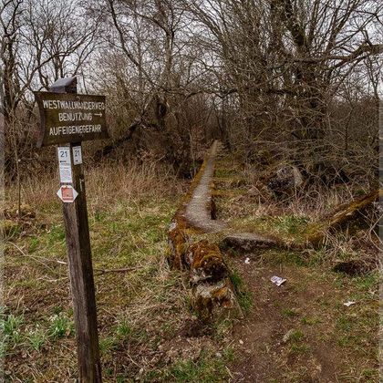 Nach Verlassen der Ortschaft wandern Sie durch eine naturbelassene Landschaft und erreichen nach nur wenigen Kilometern die Überreste des ehemaligen Westwalls. Heute stehen die Höcker der Wallanlage unter Denkmalschutz und dienen als Rückzugsort für viele seltene Pflanzen- und Tierarten. Teilweise wandeln Sie im Rahmen der Wanderung sogar über die ehemaligen Mauerreste der Verteidigungsanlage, die inzwischen zu Wegen umfunktioniert wurden.