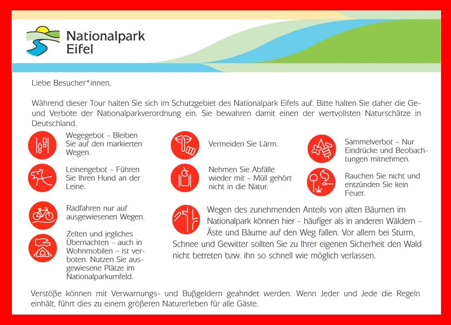 Erleben Sie rauschende Bäche, duftende Blumenwiesen, tiefe Wälder und weite Panoramablicke: die entstehende Wildnis des Nationalparks Eifel. ln vier Etappen zwischen 18 und 25 km Länge führt der Wildnis-Trail einmal quer durch den Nationalpark Eifel und zeigt Ihnen die Vielfalt und Schönheit der Natur. Die erste Etappe von Monschau/Höfen nach Simmerath/Einruhr ist zugleich die anspruchsvolle, da es viele Höhenmeter zu bewältigen gilt.