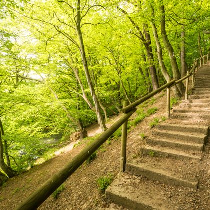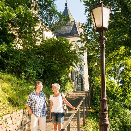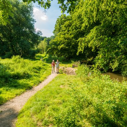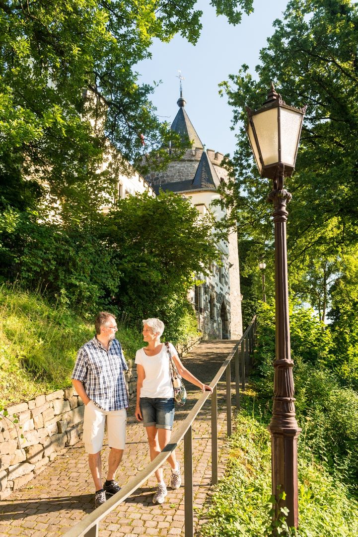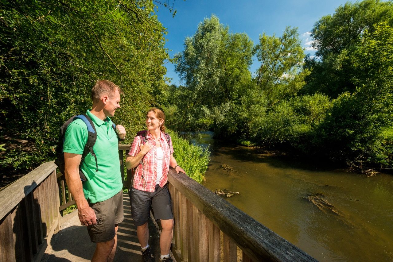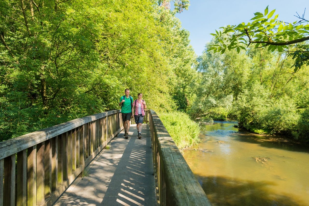 Auf unserer Route kommen wir dem Fluss ganz nah, überqueren ihn und erklimmen seine Hänge. Begleitet vom Plätschern geht es durch Wiesenauen und alte Wälder. Ein alter Stollen und ein Steinbruch erinnern an die jahrhundertealte Bergbaugeschichte des Tals. Der Dorfanger von mit seinen alten Höfen ringsum stellt klar, dass hier auch die Landwirtschaft eine lange Geschichte hat. Dann gilt es, die Wurmhöhen zu erklimmen. In exponierter Hanglage können wir mit Wilhelmstein und Rode gleich zwei Burgen auf der Tour erkunden.