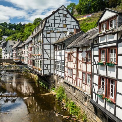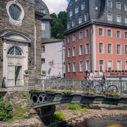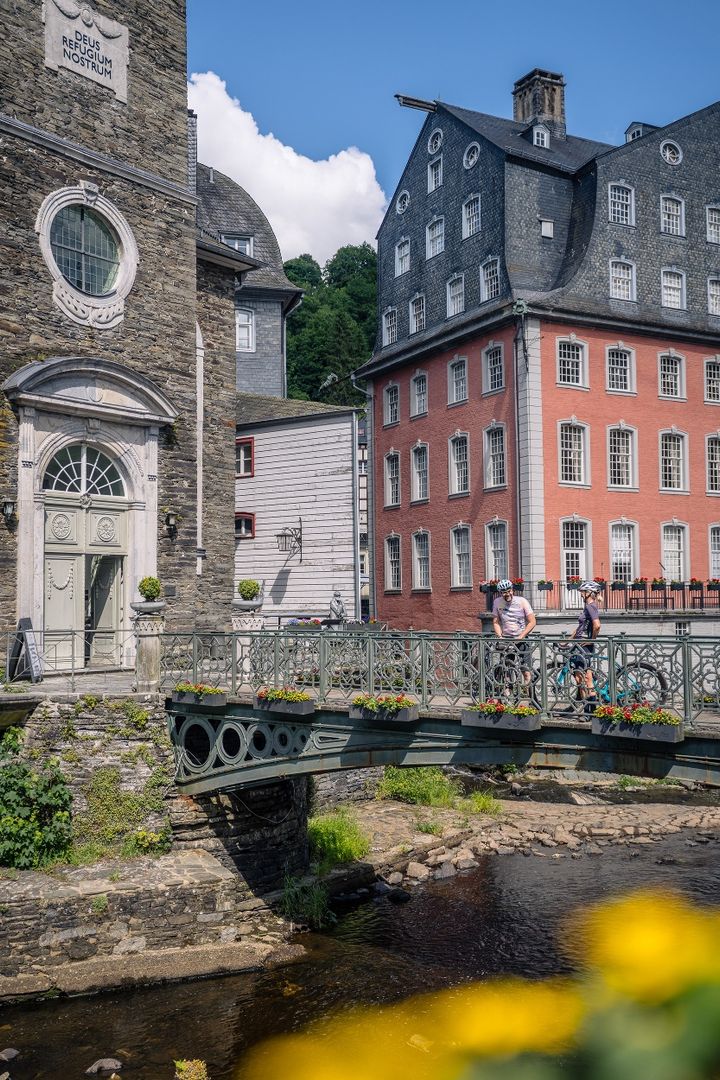 Durch das wunderschöne Rurtal führt dich die Tour zunächst von Kalterherberg nach Monschau. Das idyllisch gelegene ehemalige Tuchmacherstädtchen lädt zum Verweilen ein. Hier hat sich im Stadtbild seit fast 300 Jahren so gut wie nichts verändert: Fachwerkidylle und Bruchsteinbau, wie sie in dieser Einmaligkeit heute ihresgleichen sucht.