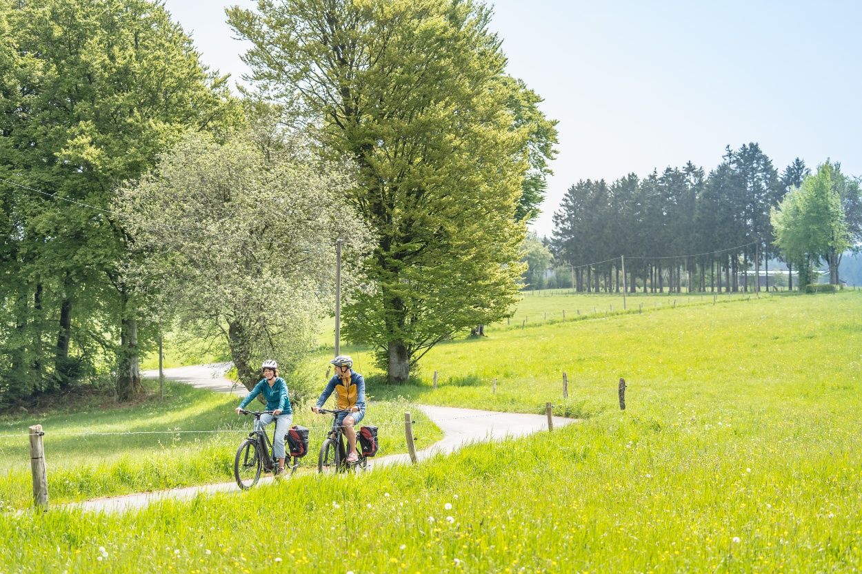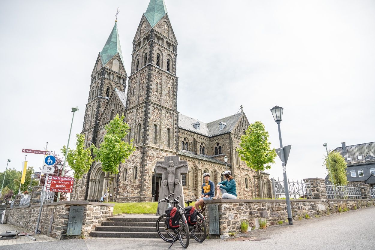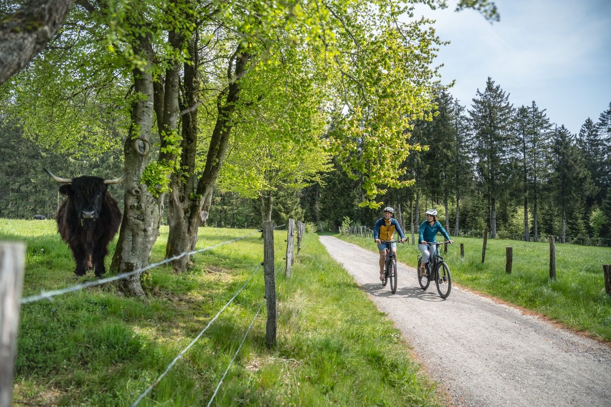 Weiter folgen wir dem Verlauf der Rur bis nach Einruhr und durch den Nationalpark Eifel, wo von Buchen geprägte Wälder den Weg säumen. Landschaftstypisch sind auch die zahlreichen imponierenden meterhohen Haushecken innerhalb der Siedlungen, die als Windschutz für die einzelnen Höfe angelegt wurden sowie ein ausgeprägtes Flurheckensystem, das Felder und Wiesen durchzieht. Der Eifeldom verkündet das nahende Ende der Tour.