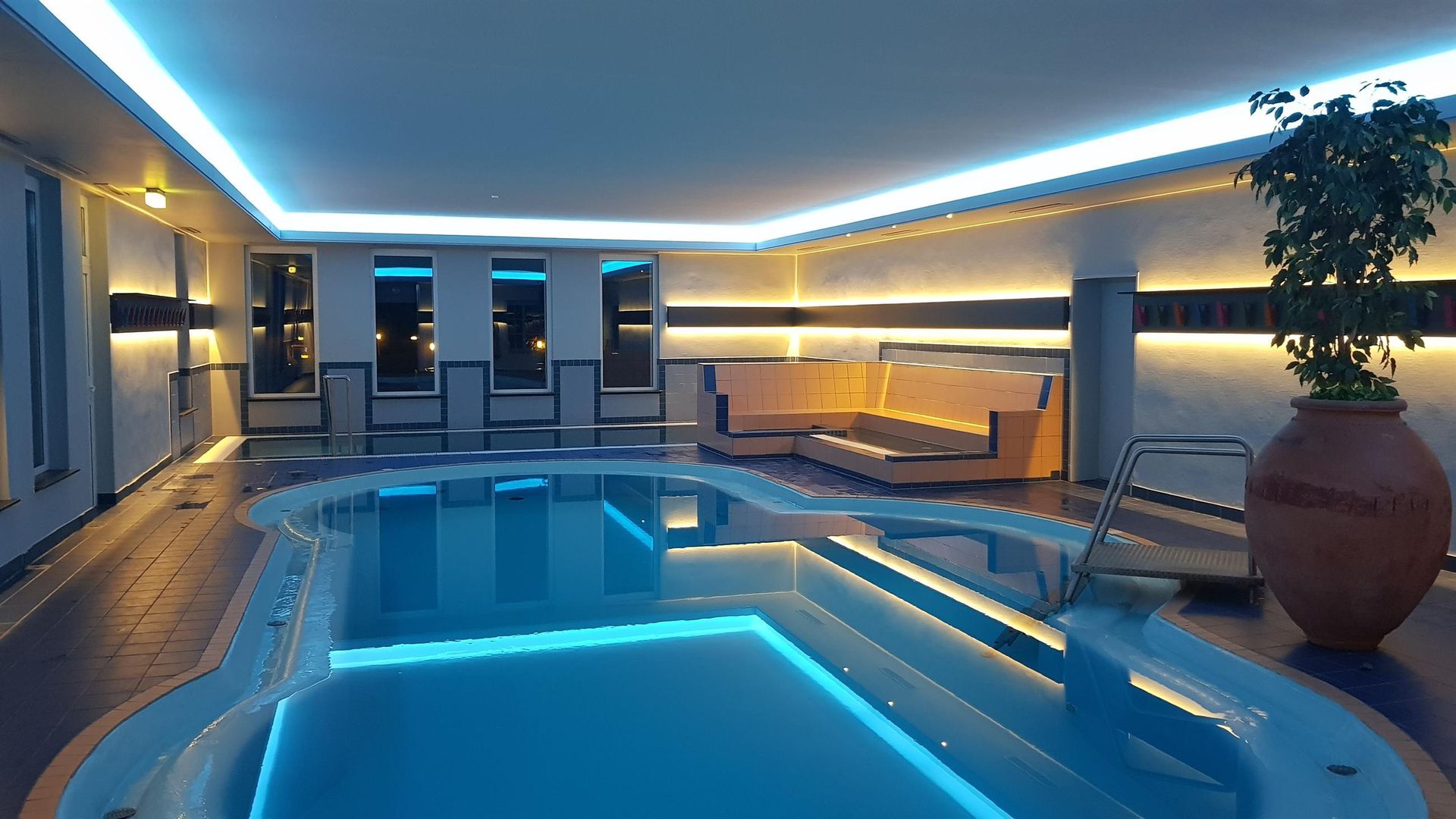 Vom Hotel aus ist die Wellnessoase „Roetgen Therme“ mit 7 Saunen (darunter die Eifeler Schwitzhütte, die Himalaya Kirstallsalz Sauna, das Aromabad und das Blütenbad u.a.) und 5 Pools direkt zugänglich. Highlight ist der große Open-AirMeerwasserpool (ganzjährig beheizt) im 5000 m² großen Thermenpark.