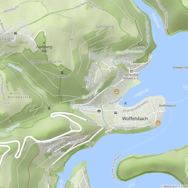 Die Anlagestelle der Rurseeschifffahrt in Woffelsbach ist zu Fuß in ca. 12 Minuten (über Treppen) zu erreichen.