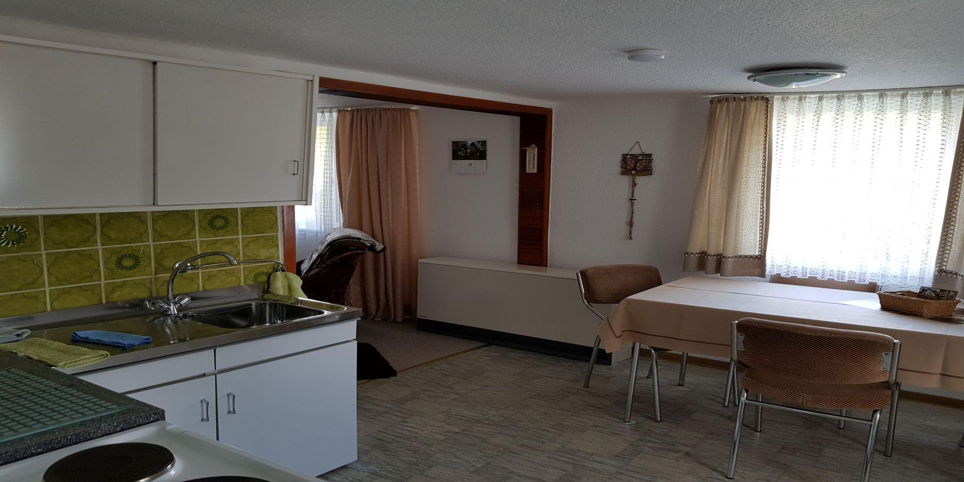 Kleine Ferienwohnung in ruhiger Ortslage. Komplette Einrichtung einschließlich Bettwäsche, Hand- und Küchentücher. Nichtraucher-Wohnung. Parkplatz am Haus. Zimmerhöhe nur 2m.