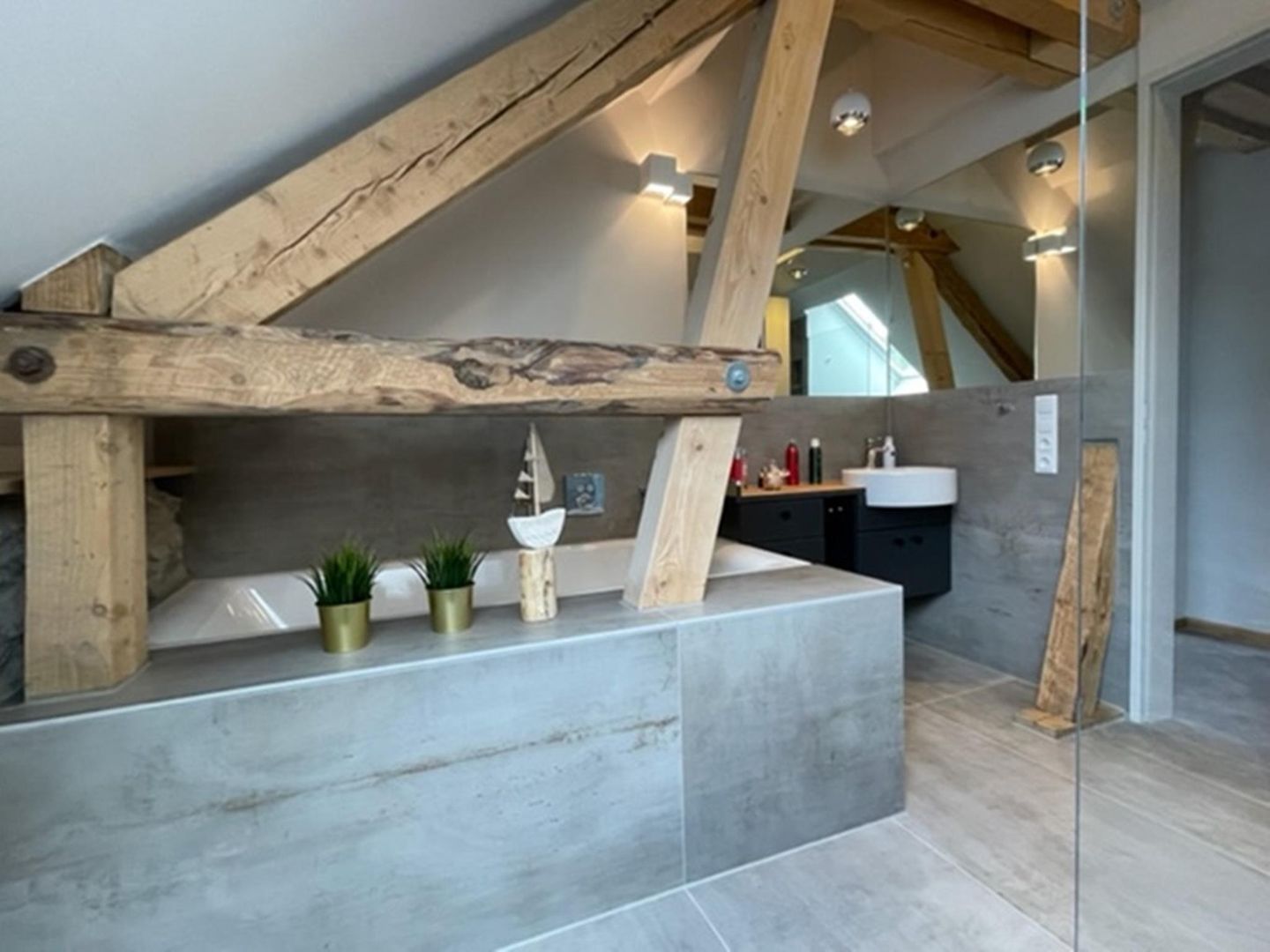 Die Bäder auf dieser Etage verfügt über eine Dusche, Badewanne und WC.