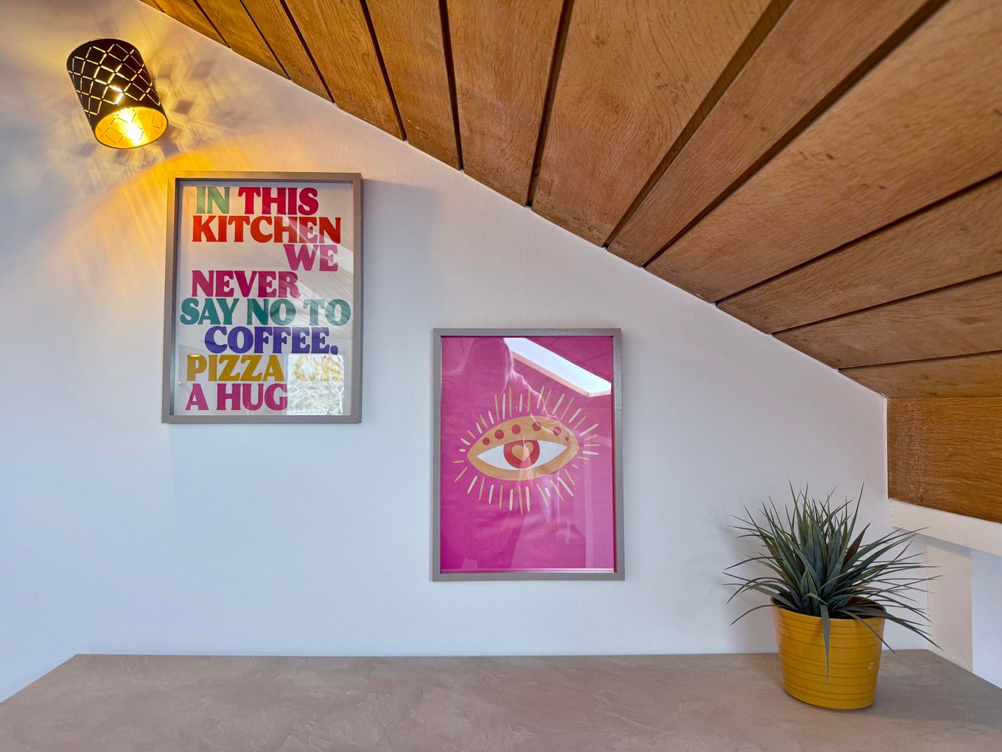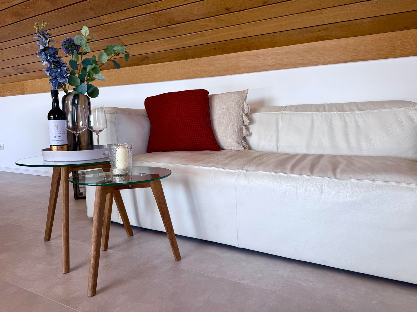 Diese charmante Ferienwohnung befindet sich im Obergeschoss des Hauses und ist über einen separaten Eingang zugänglich. Eine elegante Wendeltreppe führt Sie hinauf zu allen Räumen, die sich im Dachgeschoss des Hauses befinden.