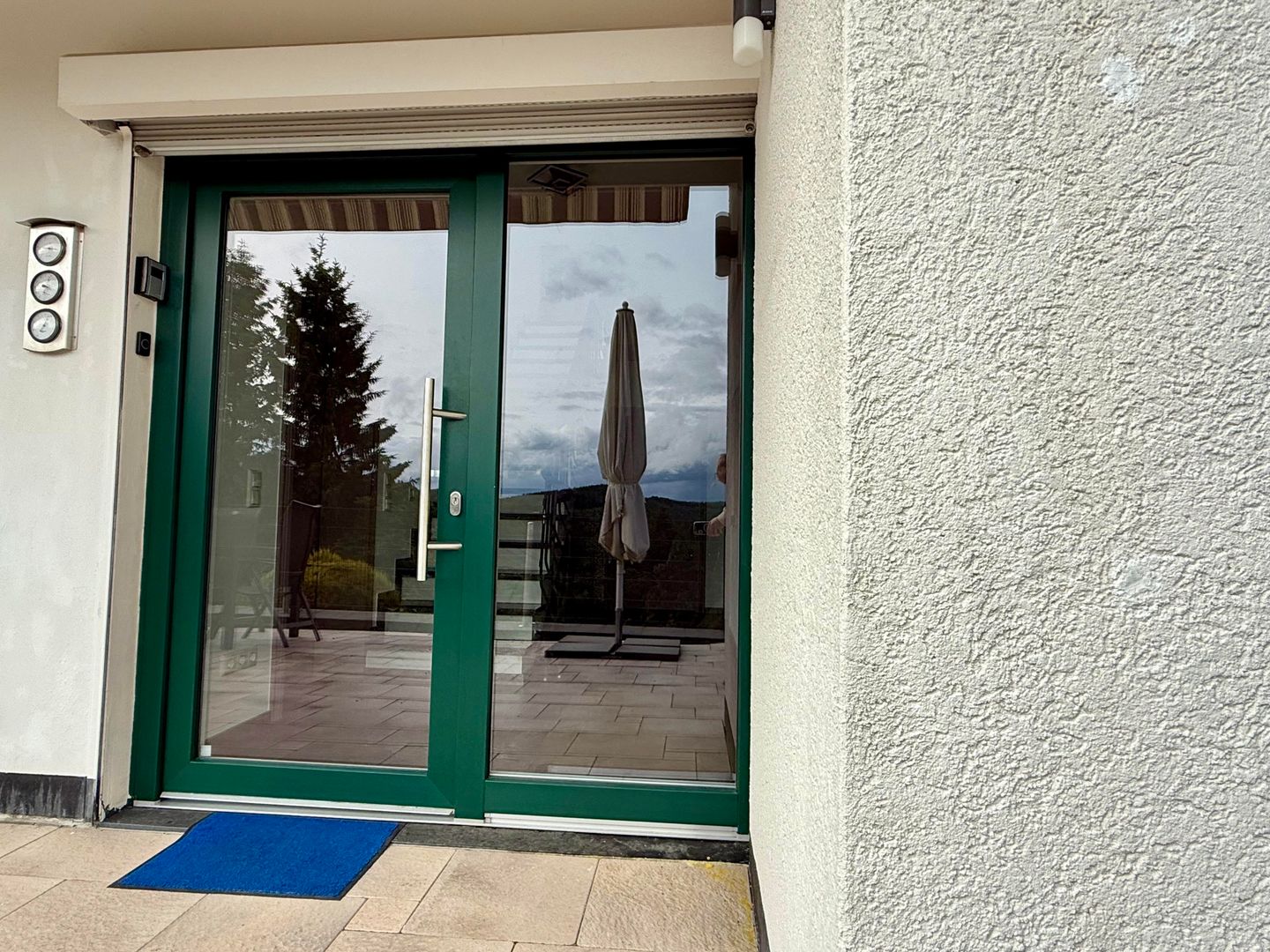 Die Terrasse ist direkt über die Eingangstür erreichbar und verfügt über einen großen Sonnenschirm sowie einen Glastisch mit 6 Sitzgelegenheiten. Von hier aus haben Sie Zugang zum Garten, der sich allerdings in Hanglage befindet. Die Terrasse ist der perfekte Ort für laue Sommerabende!