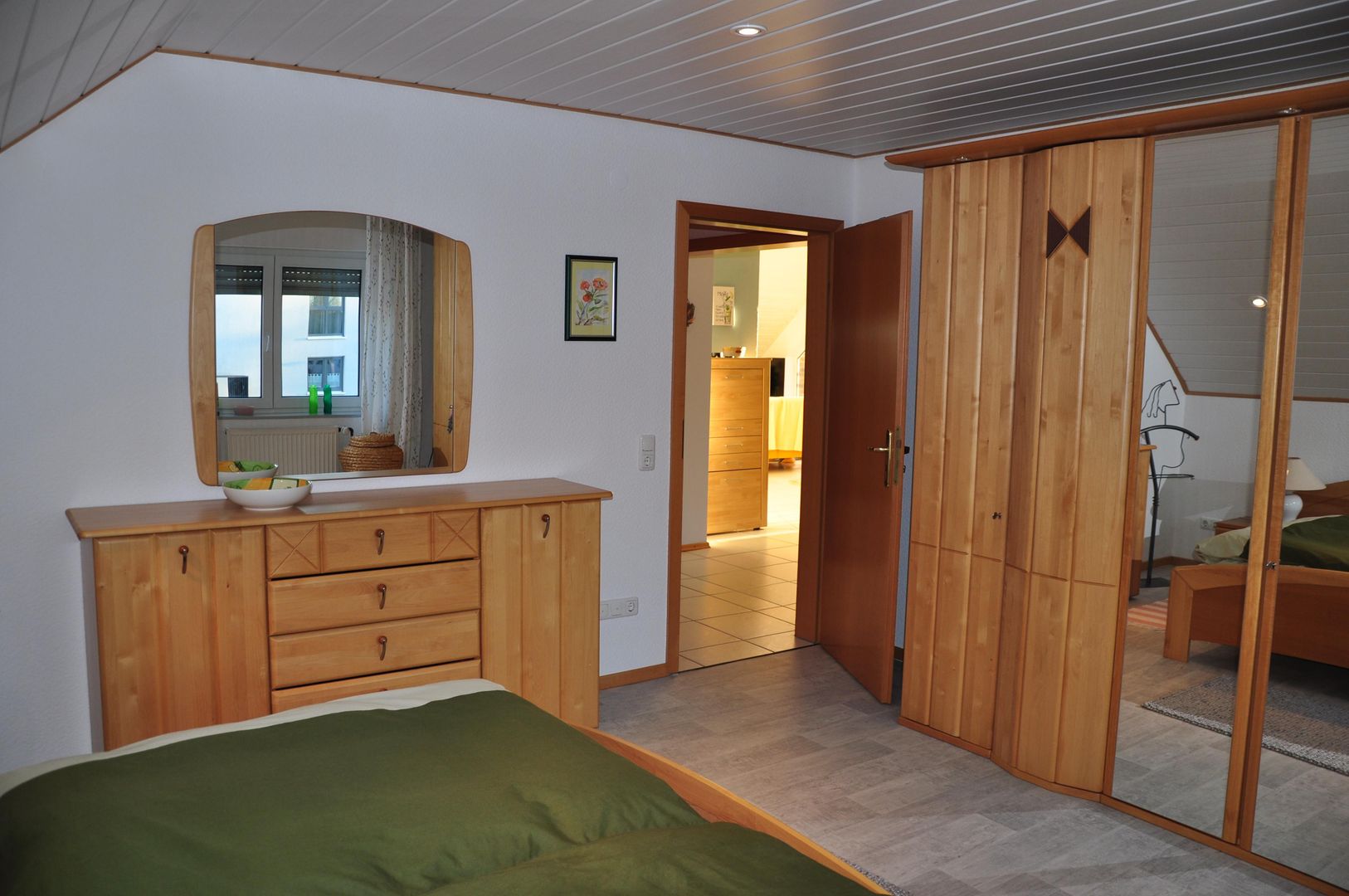Ein Schlafzimmer ist mit einem einem Doppelbett (180x200) ausgestattet und ein weiteres Zimmer ist mit zwei Einzelbetten (90x200) ausgestattet.