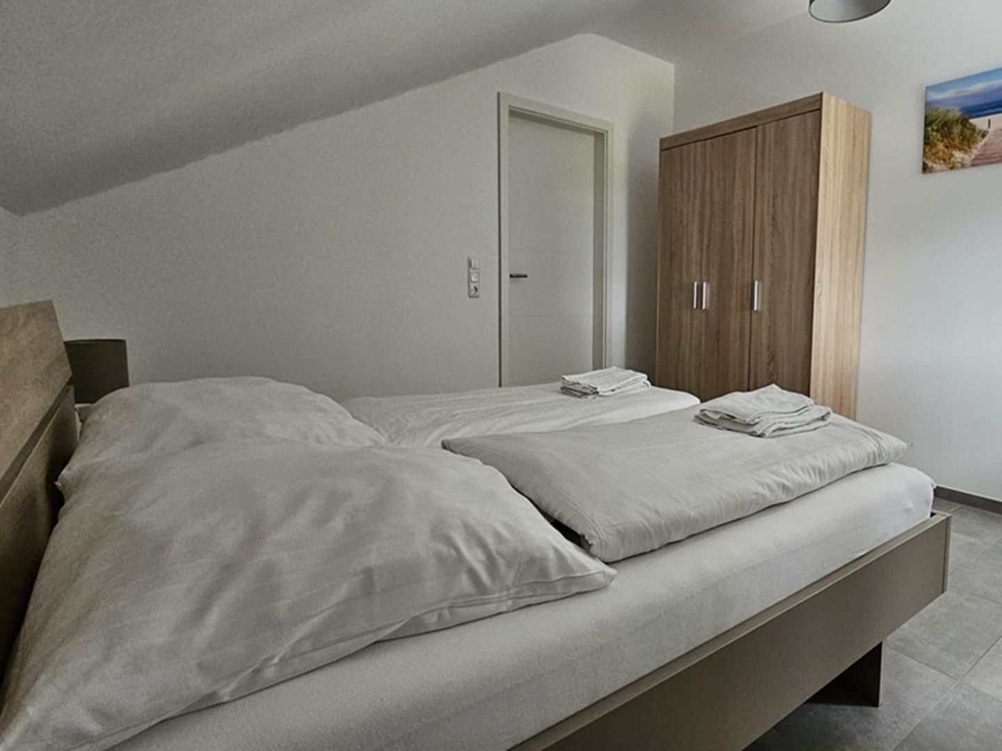 Die Wohnung verfügt über 2 Schlafzimmer. Ein Zimmer ist mit einem Doppelbett (180x200) ausgestattet; das zweite Schlafzimmer bietet ein Einzelbett (90x200).